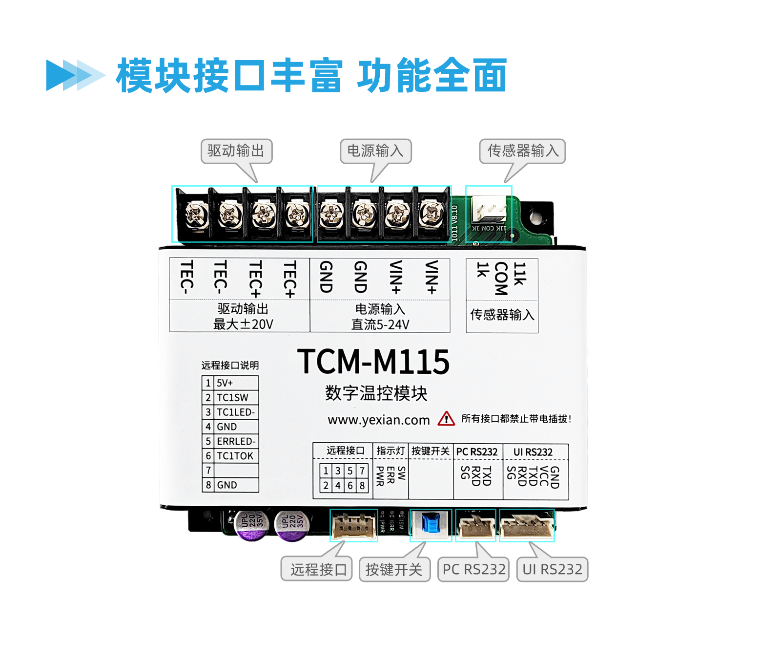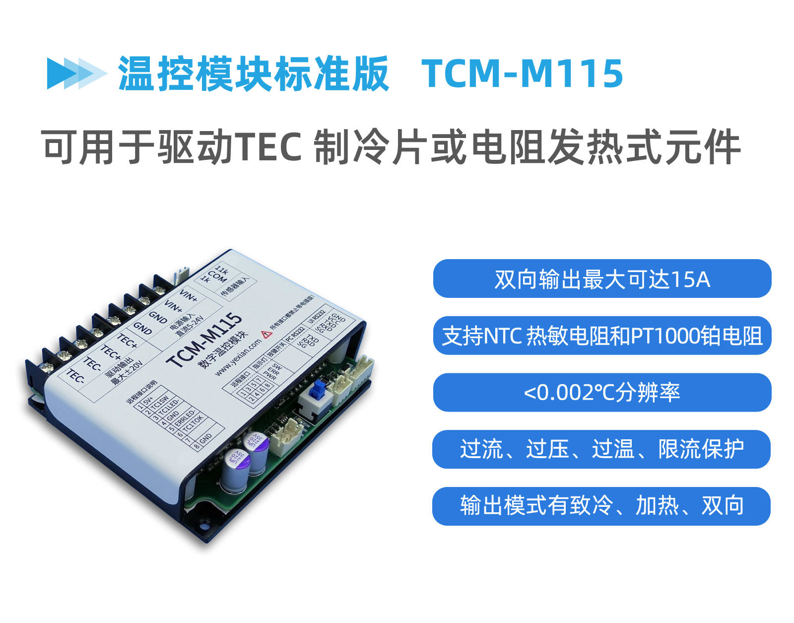 标准版TCM系列温控器,可以用于驱动半导体制冷片TEC实现双向高精度温度控制,具有优异的恒温性能;