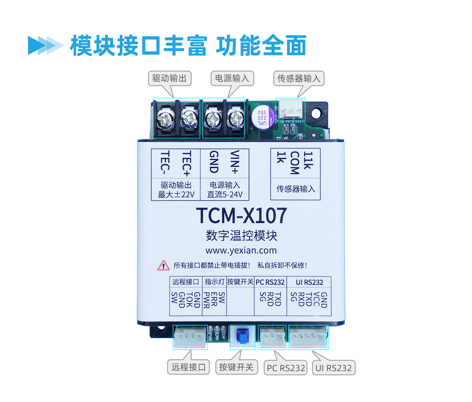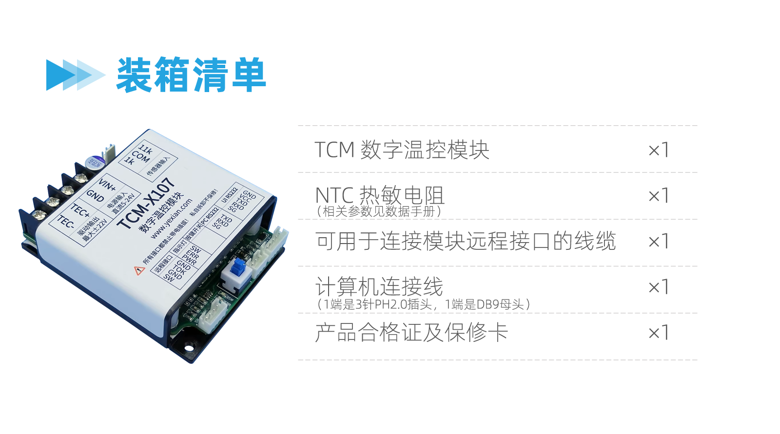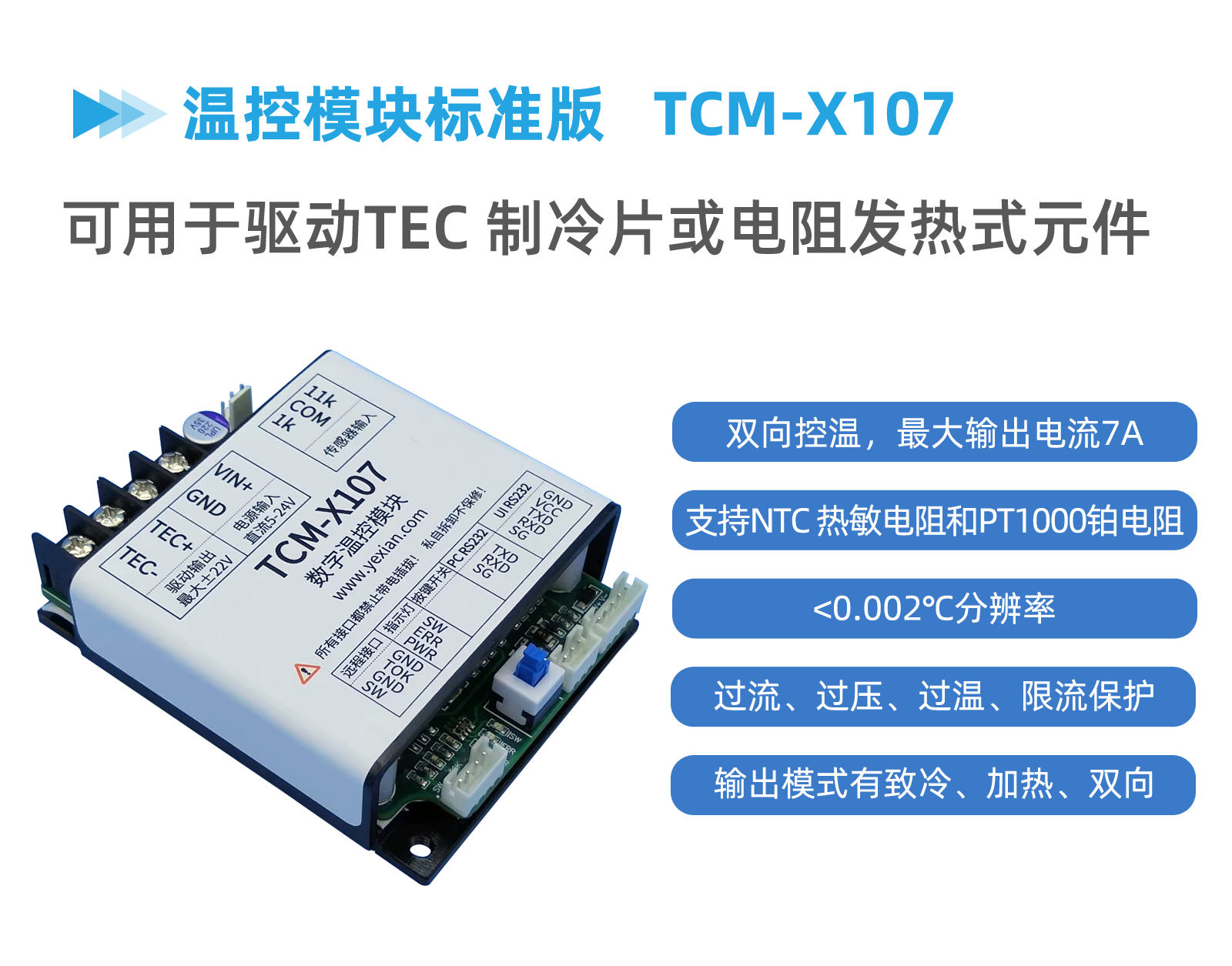 标准版TCM系列温控器,可以用于驱动半导体制冷片TEC实现双向高精度温度控制,具有优异的恒温性能;