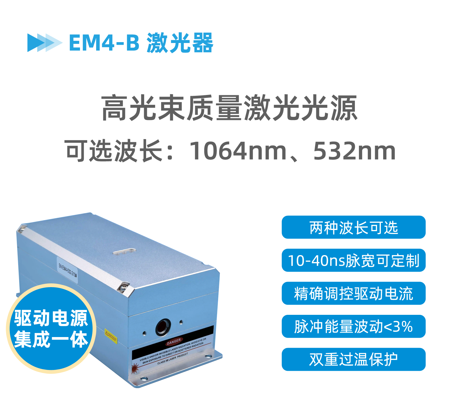针对客户对长脉宽激光器的需求,我们设计了EM4-B系列长脉宽激光器,相比EM4系列6-10ns的脉宽,EM4-B系列脉宽在10-40ns范围内可定制。