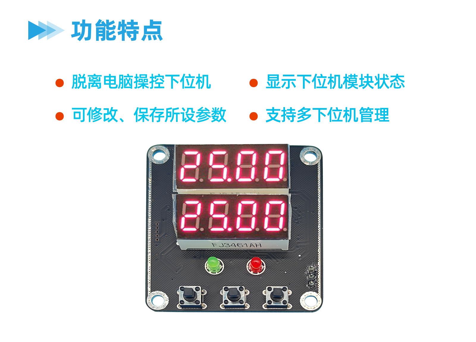 数码管显示清晰,可视角度广;显示内容可以由用户设置。