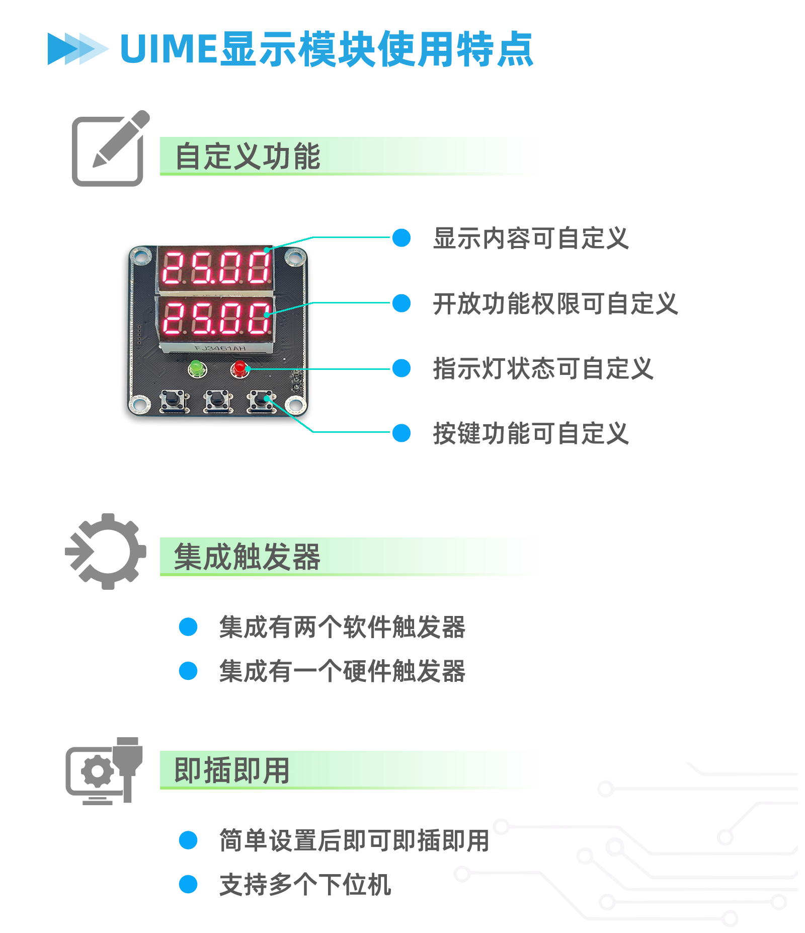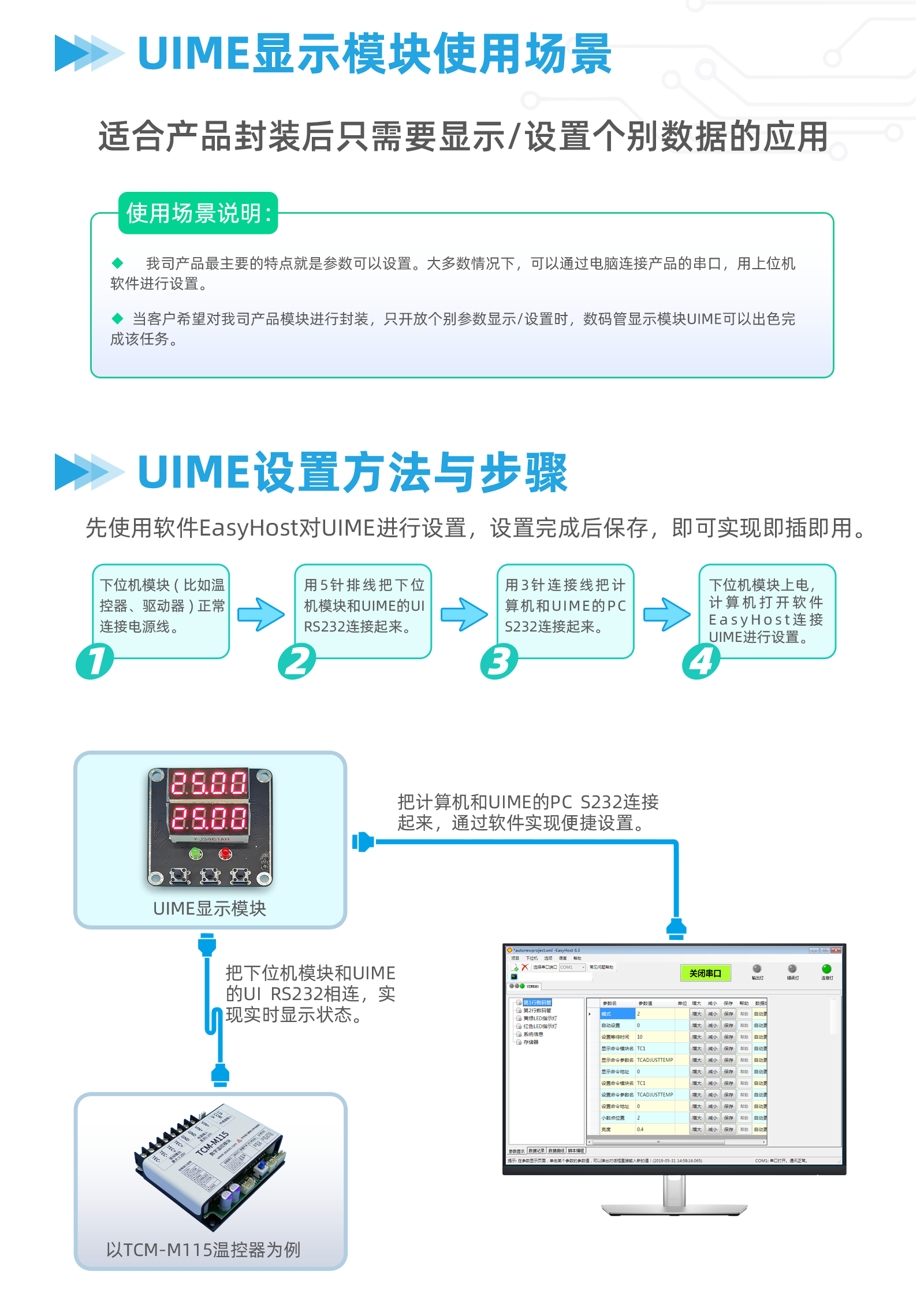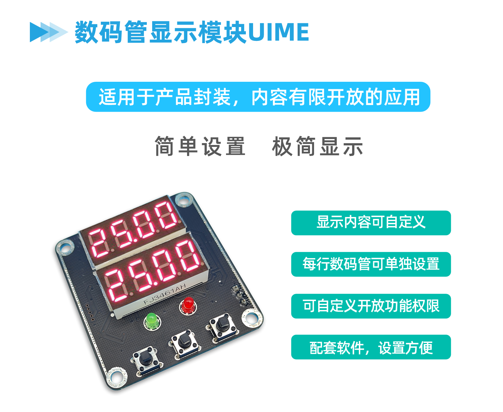 有时,客户希望对我司产品模块进行封装,只开放个别参数显示/设置。数码管显示模块UIME可以出色完成该任务。