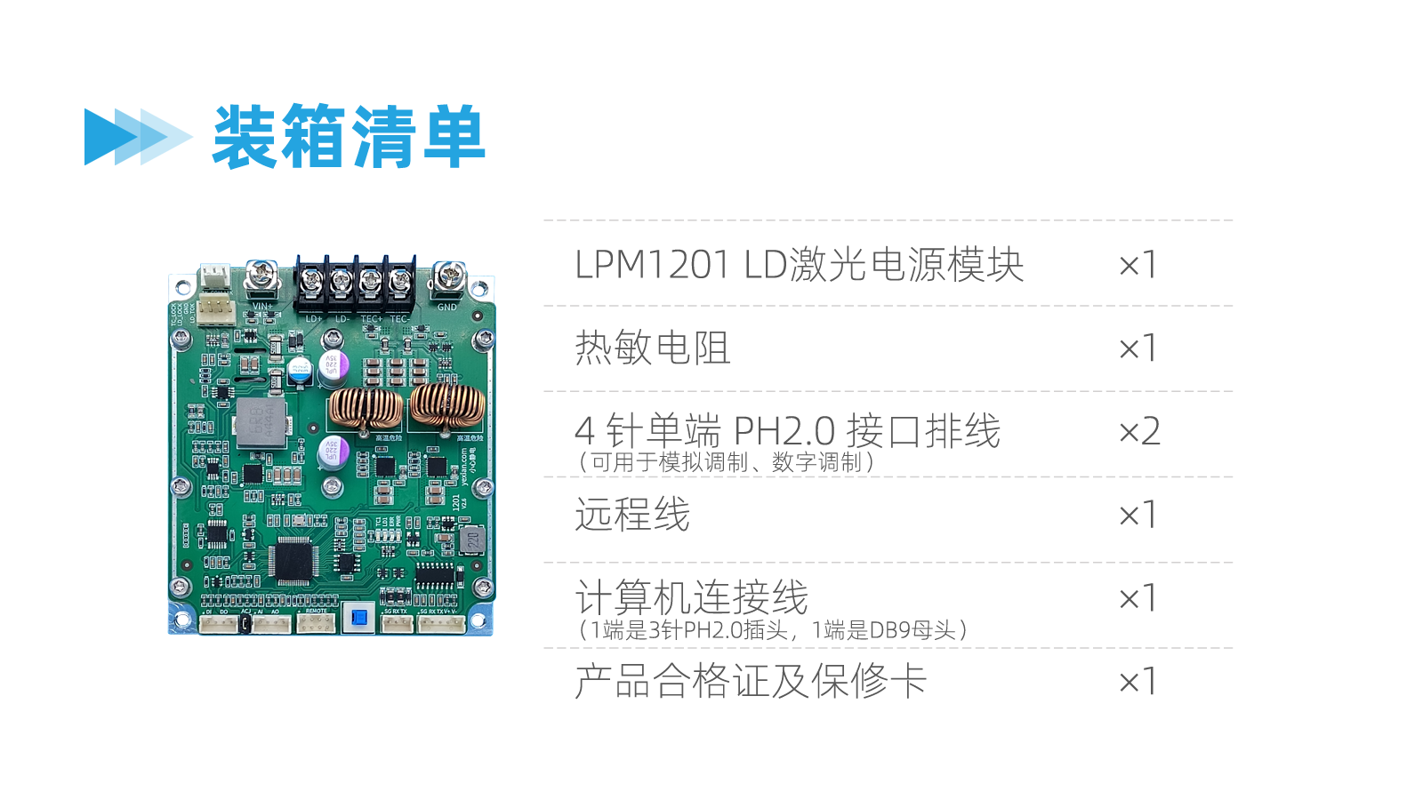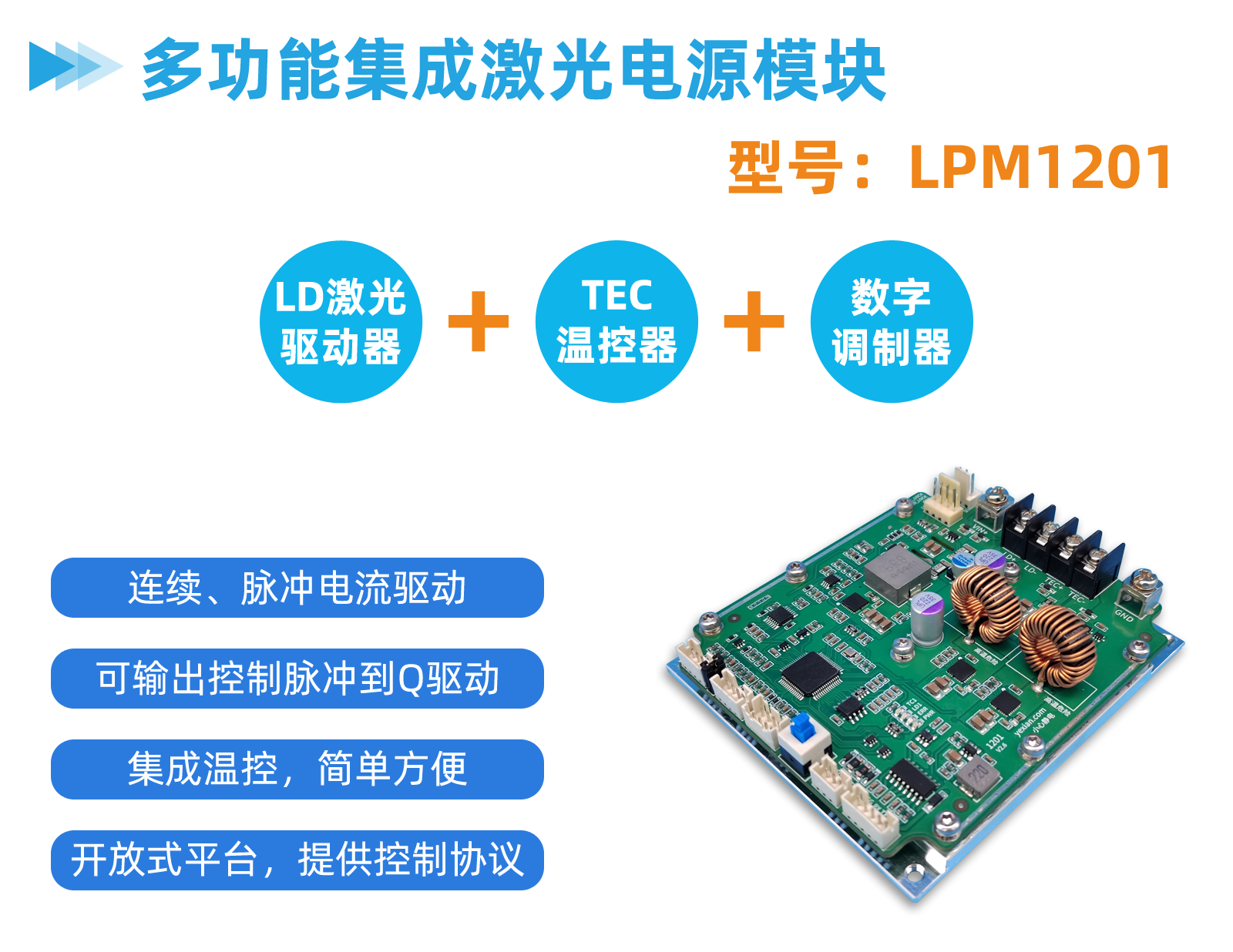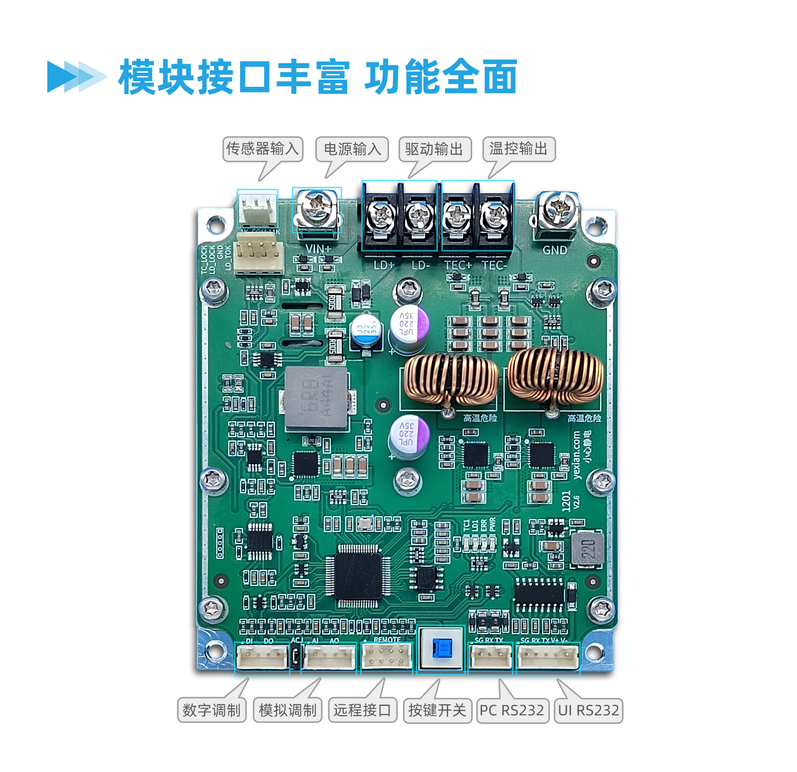 激光电源模块,集成了LD(Laser Diode,激光二极管)恒流驱动和TEC(Thermo Electric Cooler,半导体致冷片)恒温温控。